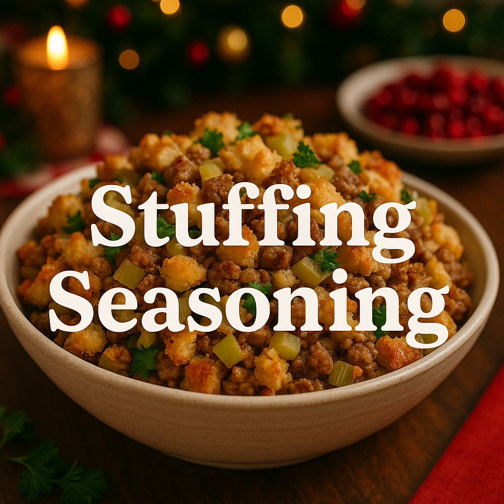 Five festive 2 oz blends—Prime Rib, Turkey, Stuffing, Veggie & Apple Pie–Inspired Dessert. A complete holiday spice set for warm, joyful meals and perfect seasonal gifting. 🎄